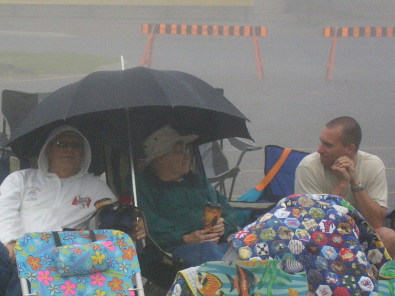 At the second warmup song the sun disappeared and the fog rolled in and still Bonnie sang, drowning out the freight train rolling by not more than 30 metres away. The crowd cheered her on. Mid-way throught the third warmup song an occasional raindrop splashed into my coffee cooling it to a more drinkable temperature. Still the bulk of the crowd of 50 or so stayed glued to their seats. A few of the less hardy took shelter under the awnings of the store fronts at the mall.